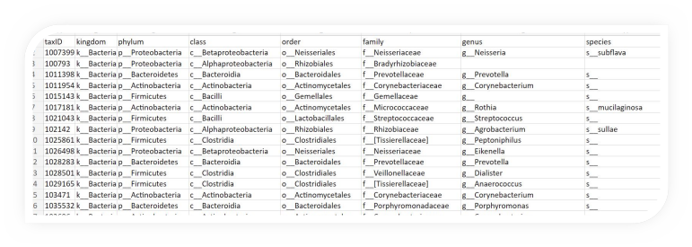 1 row = 1 microbe