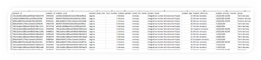1 row = 1 microbe ; 3,434 microbes