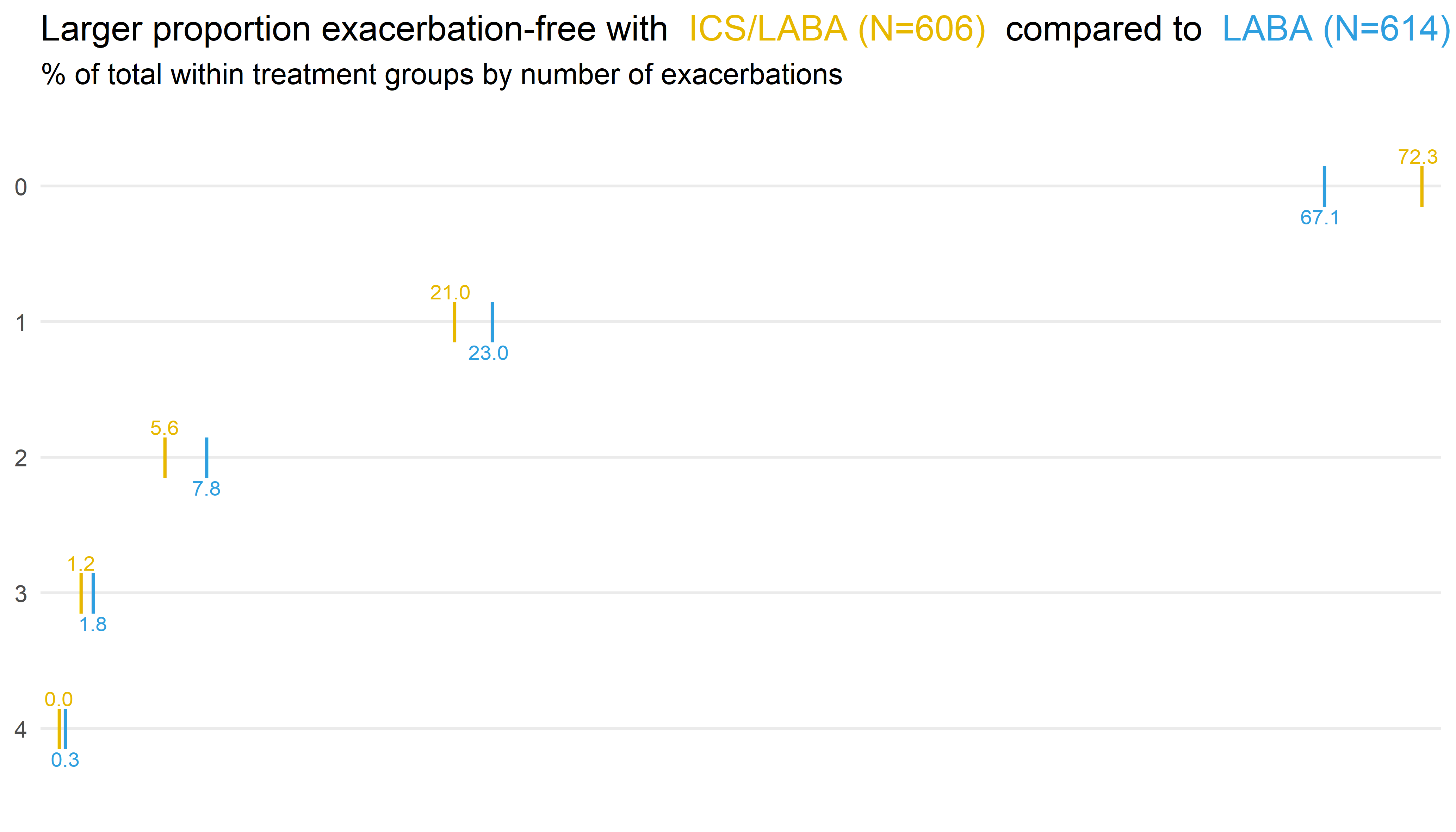 In this month’s webinar, we discussed an exacerbation example data set. The data is based on the RISE study for patients with moderate COPD. The primary endpoint is the number of exacerbations during a six month treatment period. Event data – but patients can (and do) have multiple exacerbations. Statistical analysis used a Negative Binomial model. The dataset also included other variables which (may) effect the exacerbation rate: % Predicted Normal of Forced Expiratory Volume in 1 second (FEV1), Exacerbations in previous year, and Region / Gender. The challenge was to produce a data visualisation incorporating the information on the number of exacerbations observed. The discussed visualisations included a straightforward and clear presentation of the number of exacerbations, a Power BI app, longitudinal plots, and a display of patient-level outcomes.