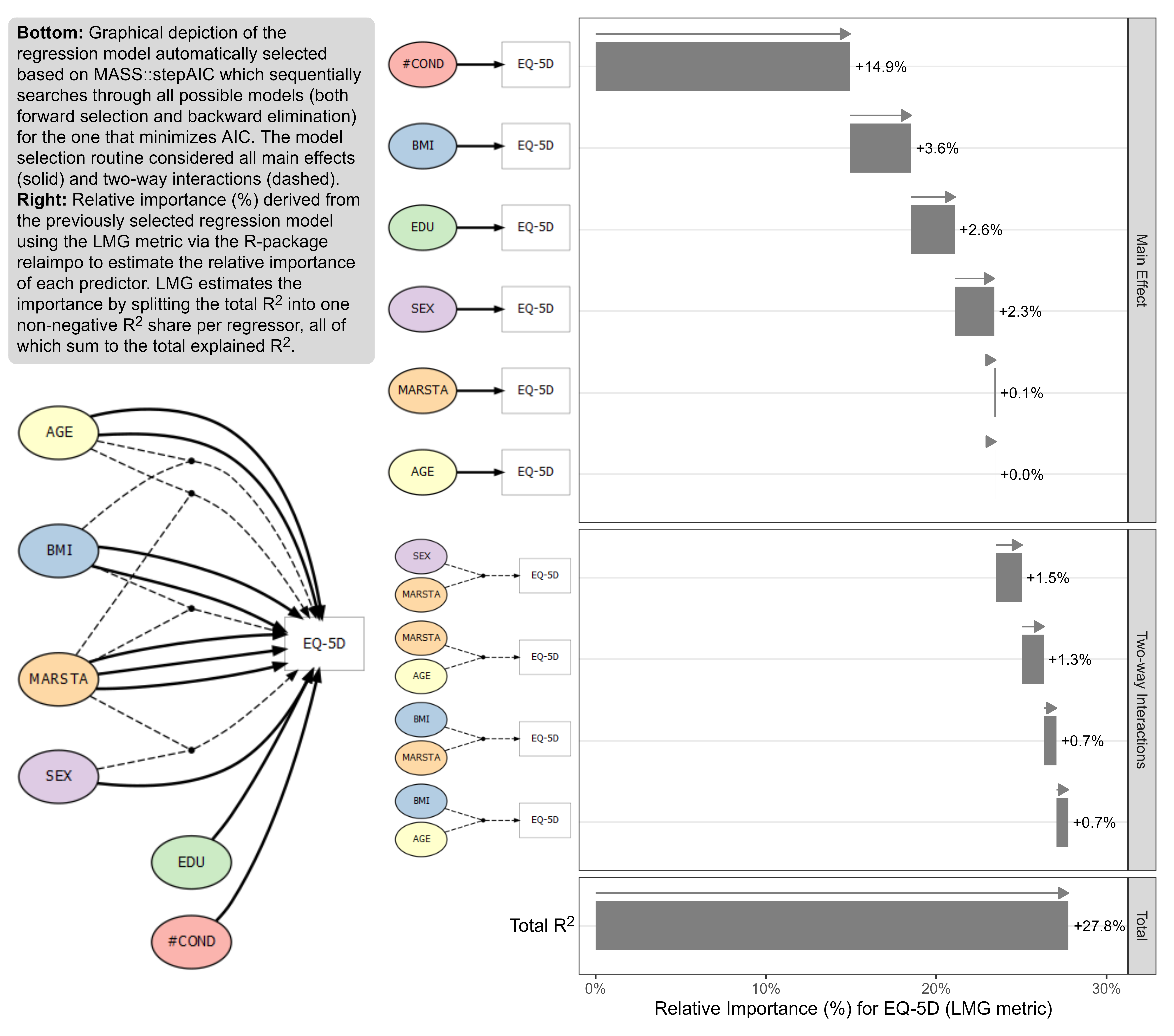 The goal was to find a way to visualize the impact of different risk factors (comorbidities and symptoms at admission to hospital) on the risk of death considering the competing risk of recovery.