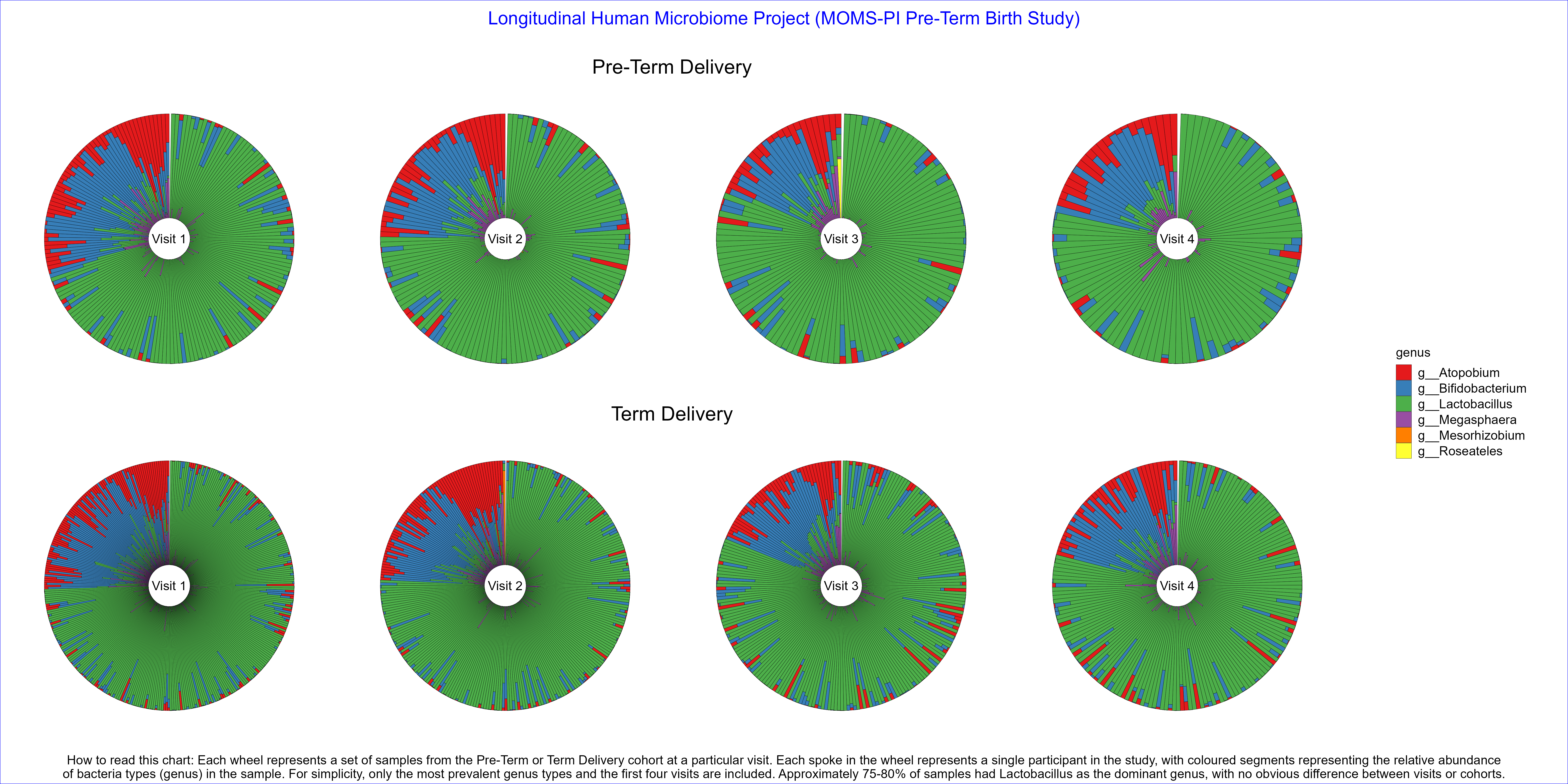 Produce data visualisation(s) providing insights into how microbiome profiles change over time and what the differences are in microbiome profiles between Pre-Term Birth and Term Birth.