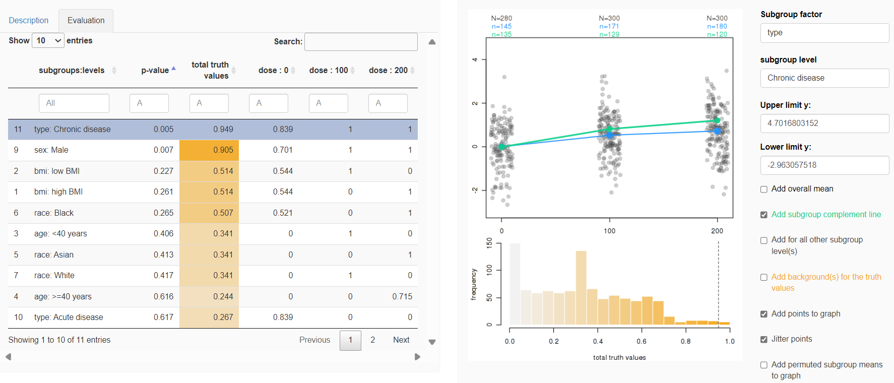 Demographic data display: The challenge is based on CDISC data. It is a standard ADSL data set for subject level data (demographics and baseline).